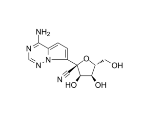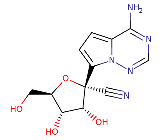 The GS-441524 1'-cyano-substituted A analog. It is remdesivir's predominant metabolite circulating in the serum due to rapid hydrolysis (half life less than 1 hour) followed by dephosphorylation.The elimination half-life of GS-441524 is around 2 hours in cynomolgus, much shorter than the 24 hours reported in humans. The longer half-life suggests a daily dose in the event that the drug is accepted for oral use by humans.